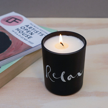 Transforming the room into the relaxing and luxurious atmosphere with this relaxing essential oil blend. It's packed with the well known relaxing essential oils that will relax and light up the mood. The scent is light, luxurious and beautiful at its perfect combination. Hand poured natural wax in a black candle glass with a relax brush painting design.